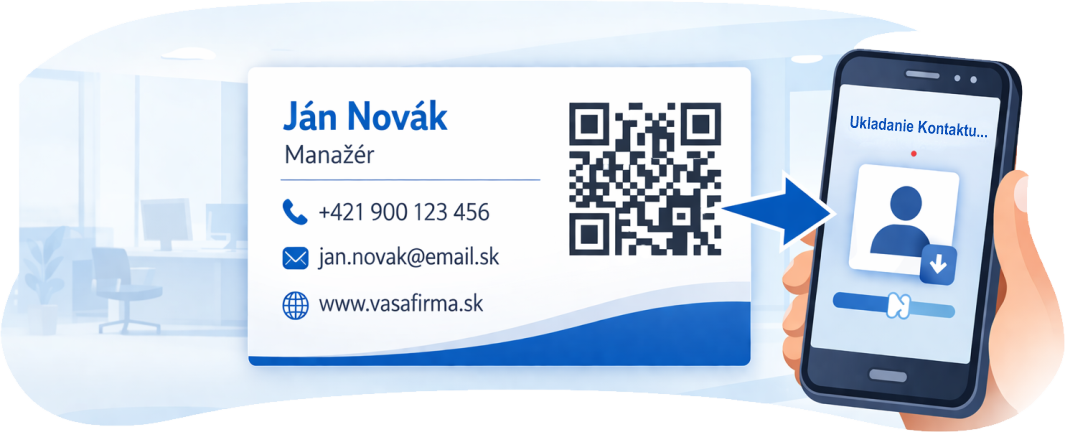 Vizitky s QR kódom — rýchle uloženie kontaktu do telefónu.